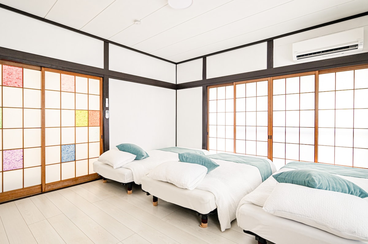 Our house is traditional Japanese style house. 150 years old and in a very quiet location. We are renting house. Not shared with other guests. There are 2 bedrooms(Tatami-room) and 1 living room, gameroom, bathroom, shower toilet, all of the room are only for you. *Children is free of charge if your children don't need a bed and break fast. There are air conditioners in bedroom and livingroom.
