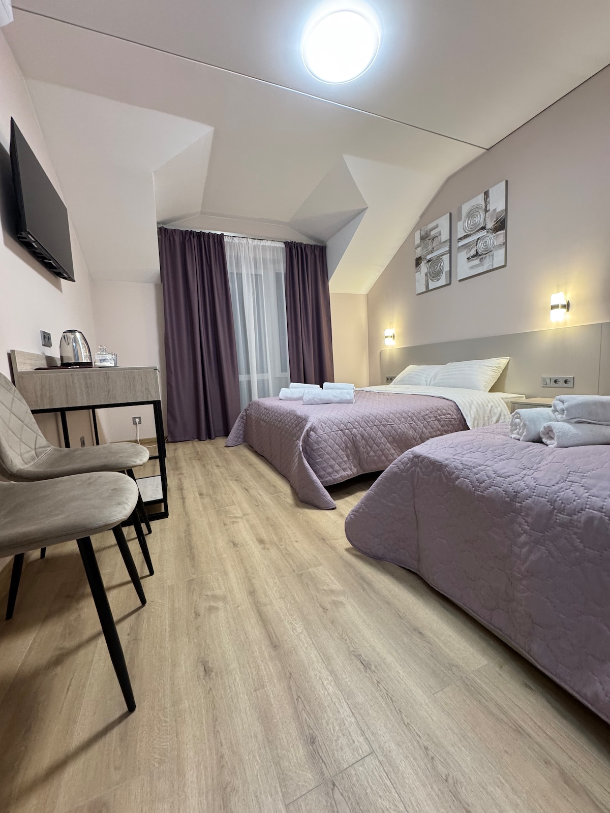 Просторные 2-х комнатные апартаменты в курортном посёлке Поляна, «Солнечное Закарпатье». Апартаменты полностью меблированы и оборудованы всей необходимой техникой для комфортного проживания. Wi-Fi и цифровое ТВ. Бювет с минеральной водой находится на первом этаже здания. Так же в пешей доступности находятся магазины и рынок. На территории дома расположены: ресторан, бассейн, сауна, детская площадка и бесплатная парковка.