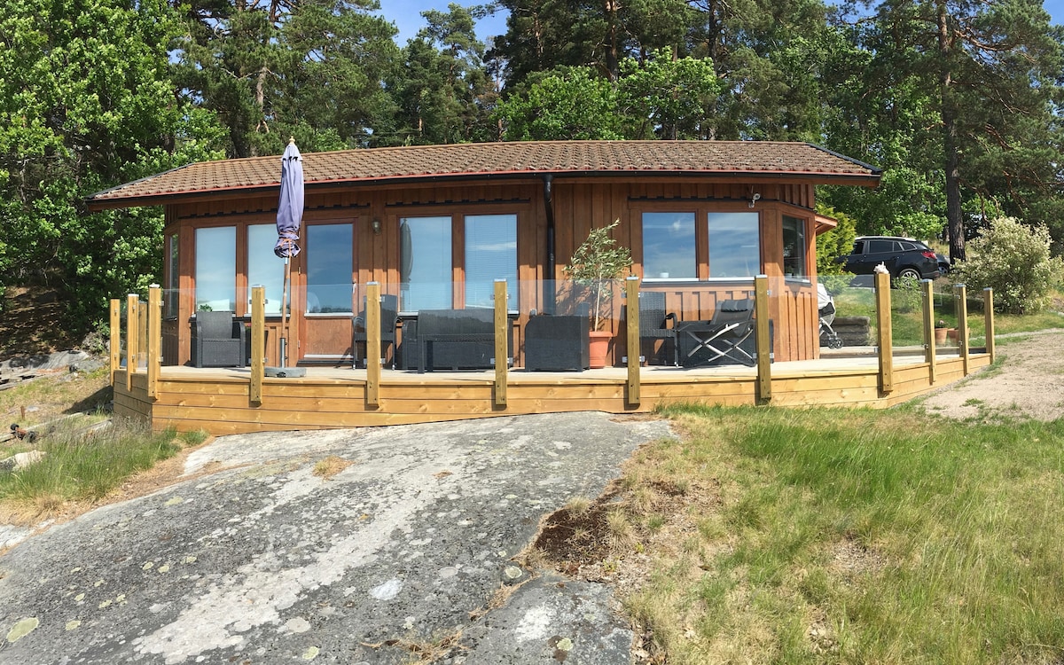 House by the sea on a jetty👍Enjoy the hot tub and wood-burning sauna. Fantastic outdoor environment. Modern and fully equipped house, tastefully decorated. Perfect experience for those who want to have a relaxing and beautiful time on the water🌞 If you want to be active: canoe, hike in the nearby national park, go for a run or go boating. All this just 30 minutes from Stockholm! Imagine spending a few days or weeks in this environment 😀 - All space is privately available to you as guests.