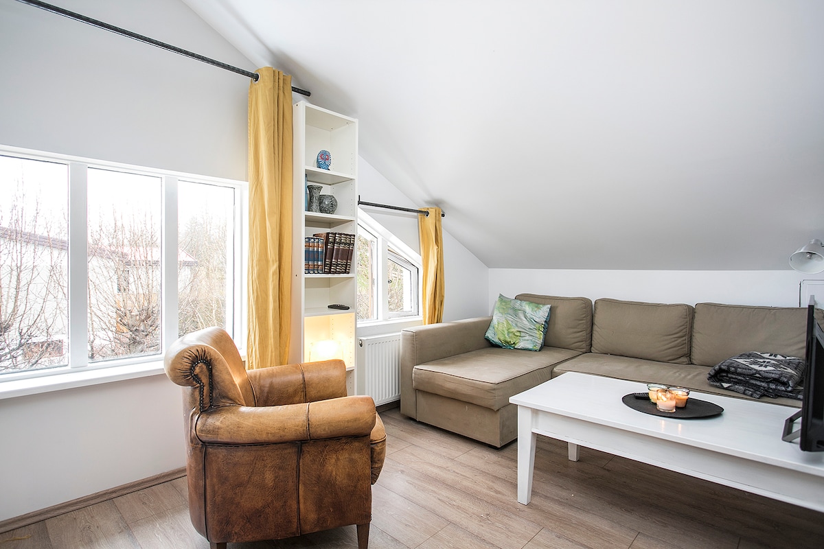 Our apartment is very cosy, it has beautiful mountain views. The apartment is next to our apartment so we are always willing to help our guests with ideas of what to do :) It is very easy to take both the flybus to Hamraborg from the airport (7 minutes walking distance from the apartment) and also to take the bus downtown or take an electric bike (Hopp) along the seashore to downtown :)