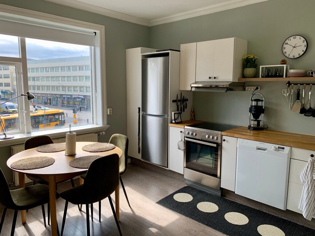 位于雷克雅未克市中心的明亮舒适公寓