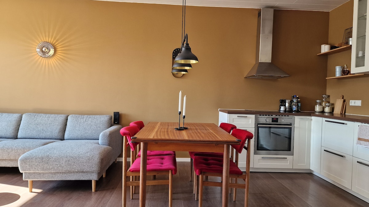Bjart og rúmgott hús með öllum þægindum fyrir ógleymanlega dvöl á Íslandi. Stórkostlegt útsýni, heitur pottur og fjögur svefnherbergi. Rúmgott eldhús og stofa með borðstofuborði fyrir samverustundir. Baðherbergi með sturtu og baði auk gestasalernis. 40 mín í Bláa lónið, 10 mín í Sky Lagoon, sundlaugar og golfvellir í grennd. Afþreying: borðtennis, pílukast, trampólín, fótboltaspil og pool-borð. Tveir vinalegir Maine Coon kettir. Fullkomið fyrir fjölskyldur og hópa.