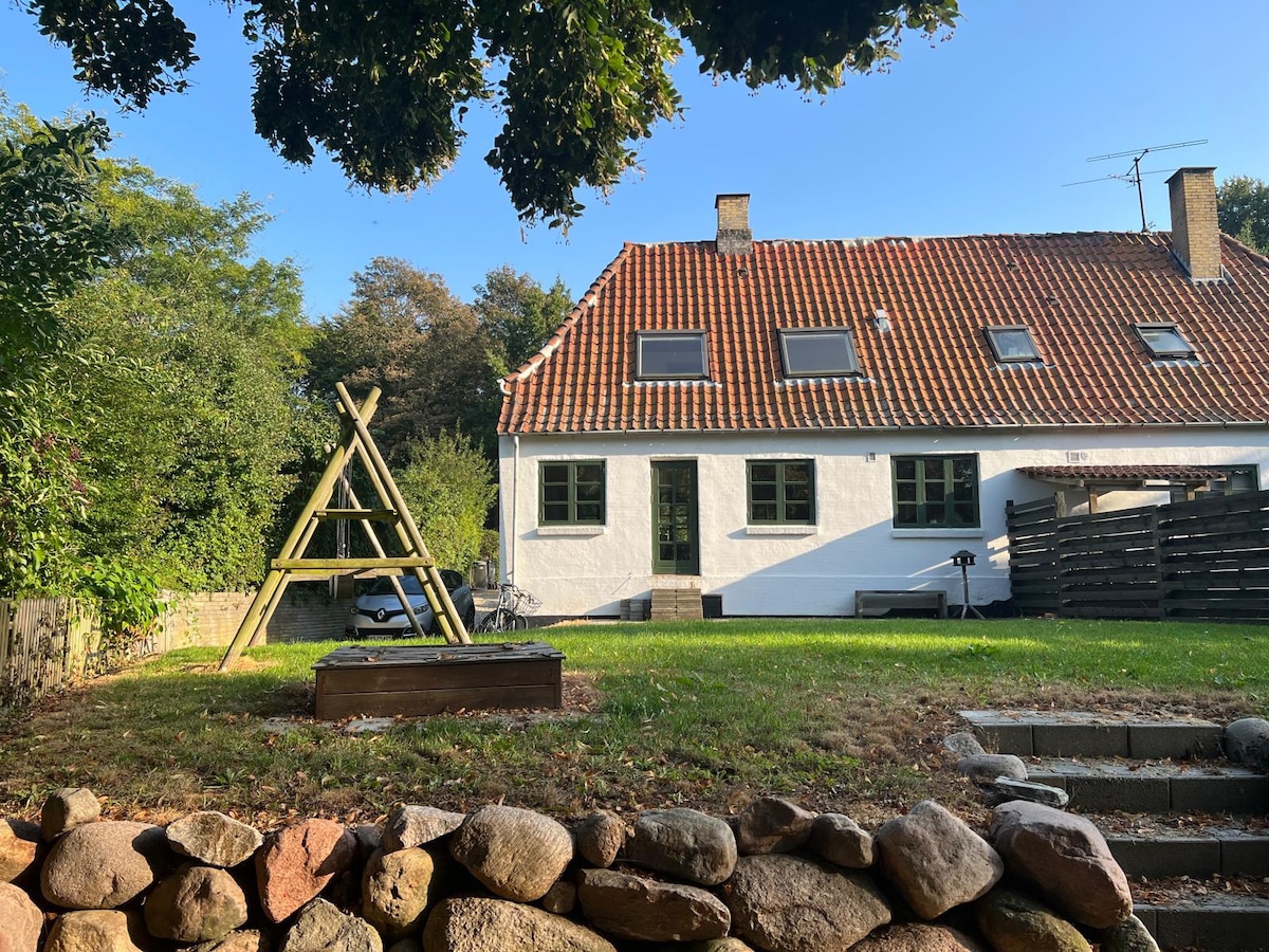 Charming house close to forest, water and the city of Svendborg. Across the house you can walk straight into the forest and within an idyllic 5 minute walk, you reach the water, Svendborgsund. The swimming area at Sknt Jorgens Lighthouse is within a 15 minute walk. The house is located only 8 min by bicycle and 5 min by car from the center of Svendborg. Supermarket within walking distance.