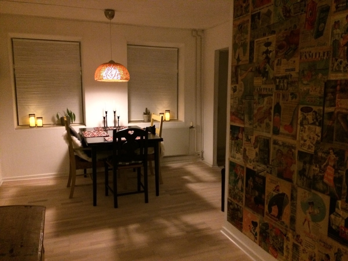 Enjoy a stay in this peaceful and centrally located accommodation. We rent out an apartment on 1. floor in our old house from 1895 with a lovely lush garden. We are, ourselves, a little family on three living at the ground floor. You have the apartment on your own. You enter through a shared staircase. There are two separated bedrooms, kitchen w dining-area, a living room and a little bathroom. You are welcome in the garden, which is also shared with us. Note that there is a cat in the house.