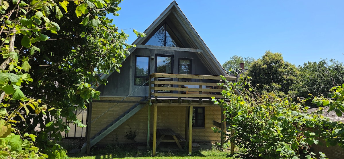 Modern, practical, romantic and comfortable cottage in lovely beach location on the island of Thurø with electric car charger point (Type 2 with 16A 11 kW), full outdoor deck, green lawn, free unlimited parking, split air-conditioning unit for convenient heating / cooling, Wi-Fi, full kitchen, wood stove, shower bathroom, tumble dryer and washer. Thurø has easy road access to Svendborg.