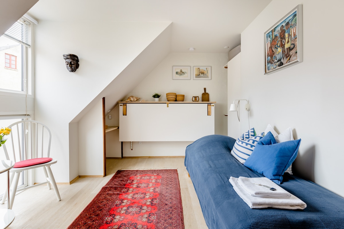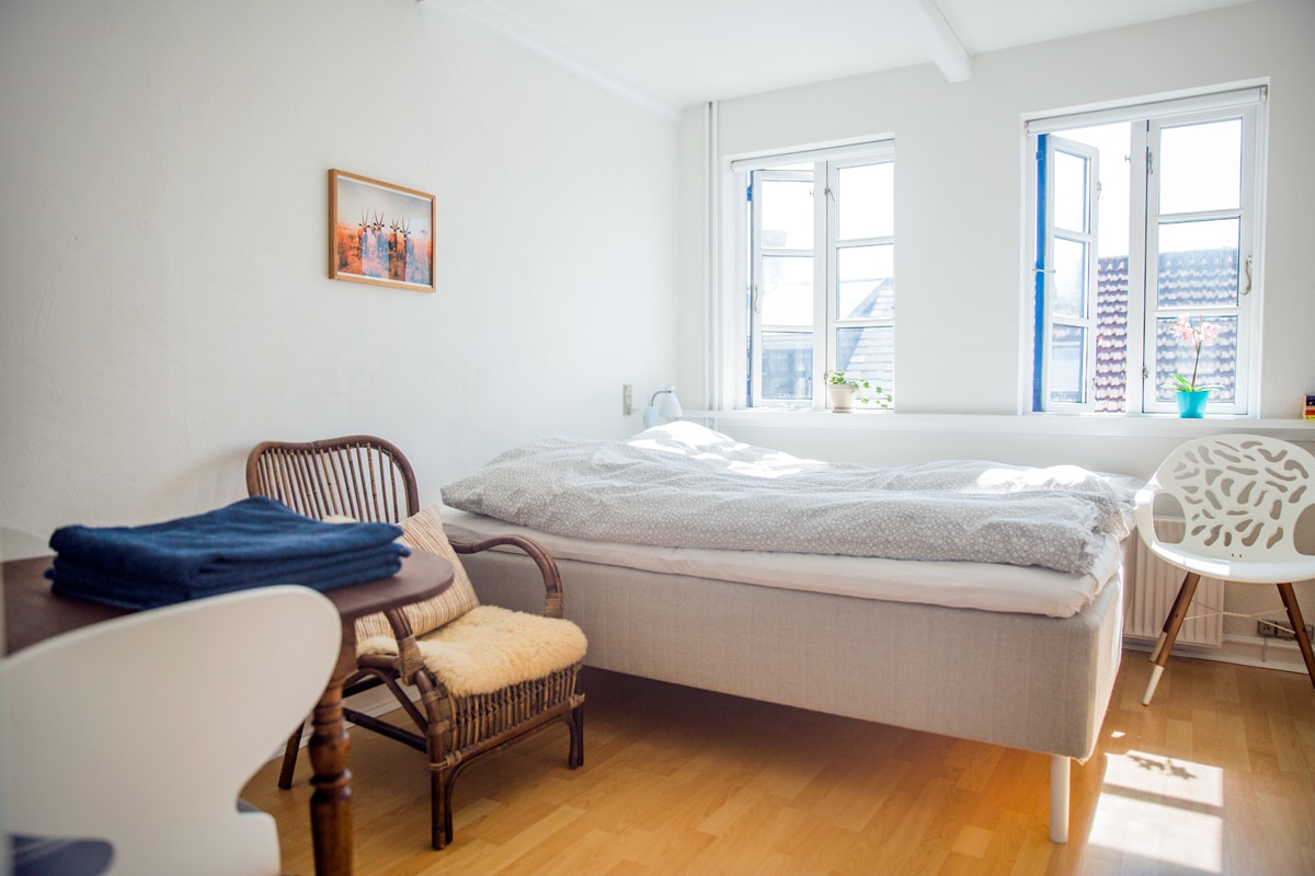 Hyggeligt og rent værelse, i et byhus fra 1777.