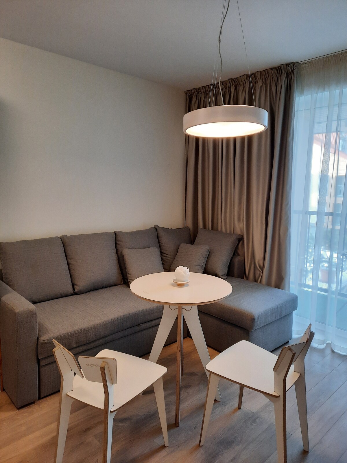 Wake up to the sound of waves and fall asleep to sea breezes – welcome to the Palanga's closest home to the beach. This spacious, light-filled studio offers a rare combination: direct dune access, a private balcony, and all the comfort for a relaxing coastal escape. Just a 2-minute stroll along a wooden path takes you over the dunes and straight to the beach. Whether you're sipping your morning coffee or enjoying a quiet sunset, the balcony becomes your front-row seat to the rhythm of the sea.