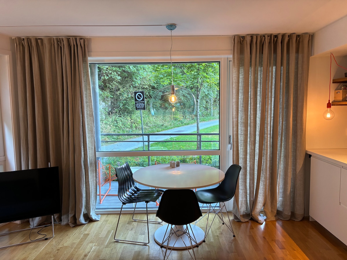 The 2-room apartment is renovated with all you need for a stay in Trondheim. There is a full size double bed in the bedroom and a sleeping coach (120x200cm) in the livingroom. The kitchen is completed with an electrical oven, cooktop, integrated coffemachine, ventilator, dishwasher, refrigerator and a fridge. Ski in-ski out in the beautiful forest outside the house. Free parking for several cars in front of house. Public transport near by ( 50 meter )