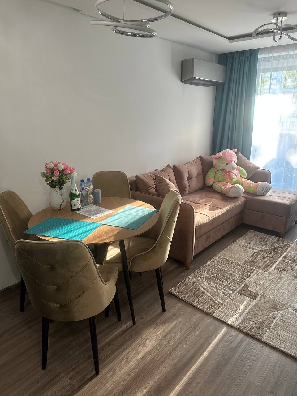 Stay in a brand-new, modern apartment just 700m from the beach! Located on the ground floor, it offers direct access to a VIP pool & jacuzzi, plus 11 more pools in the complex. Enjoy a kids’ playground, pool bar, and Mediterranean restaurant. Spa services available at extra cost. Close to Supermarket Mladost, shops, bars, and pharmacies. Free street parking. Book now for a perfect getaway!