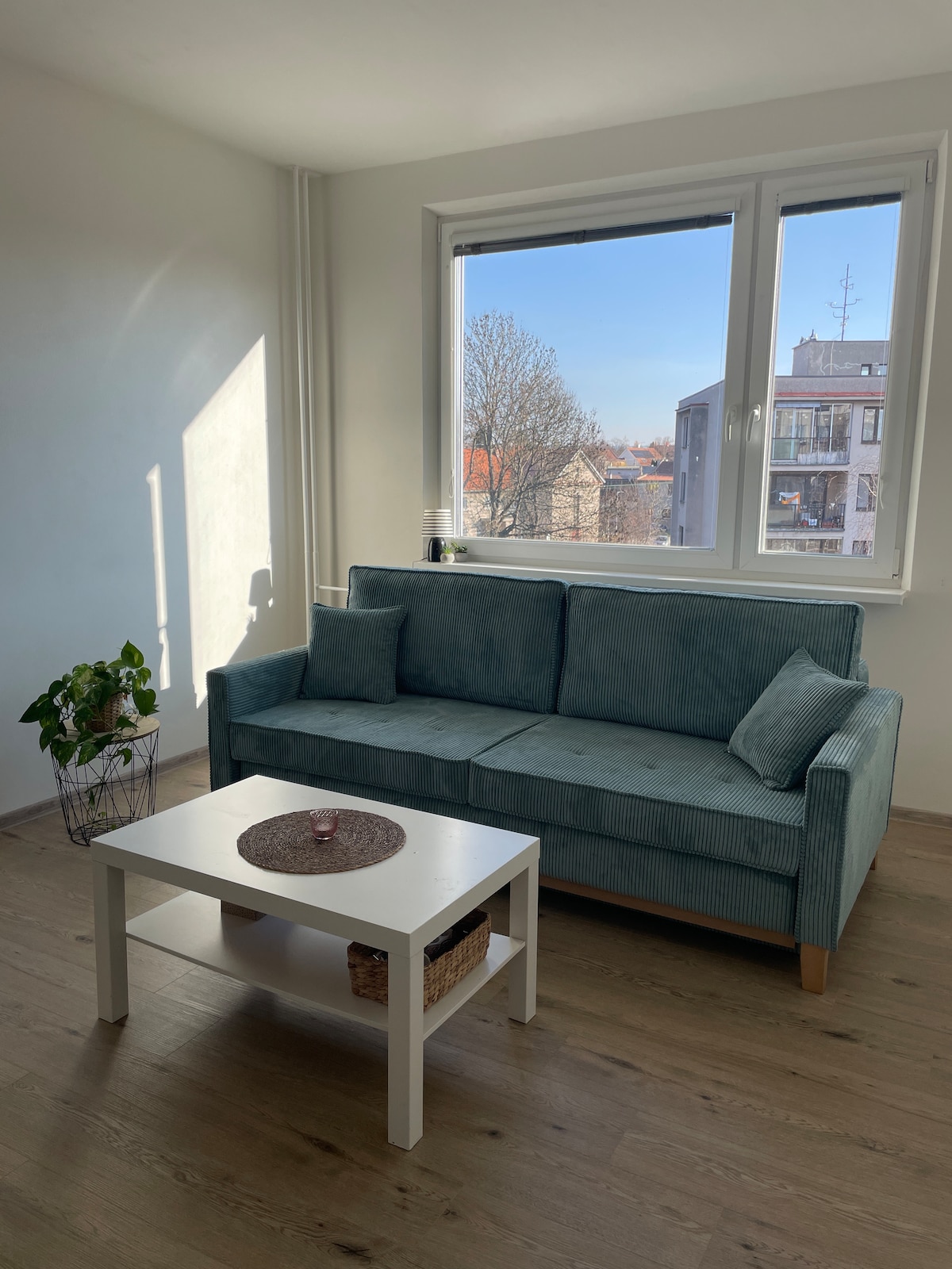 I am offering a fully renovated apartment in a close proximity to the town center - approx. 5 minutes walk to bus station and to the main square . The grocery shop is just over the corner. The south oriented flat is on the 4th floor, it is very quiet and offers a nice free window view. The flat consist of a hall, bathroom, living room with kitchen corner and bedroom with 160x200cm bed. Please note that the building has no elevator and it is therefore not suitable for less sporty guests.