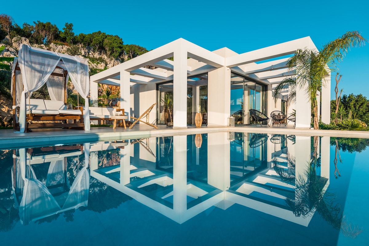 TWO BEDROOM SEA VIEW VILLA WITH PRIVATE POOL IN TRAPEZAKI Sense the ultimate feeling of luxury as you step into our two bedroom villa with private pool. Enjoy the spacious, private sundeck area, and dive into the tranquil waters of swimming pool. Agrilia Luxury Villa can accommodate up to 4 guests in its two sea view bedrooms, each with its own bathroom. Relax in the independent living room boasting majestic views of Trapezaki beach