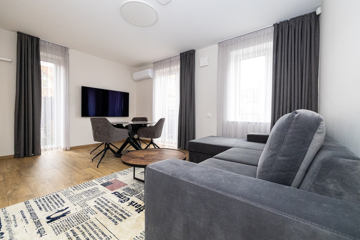 Klaipėda is a beautiful place to spend your holiday. The apartment is located just ten minutes away from the New Ferry terminal, through which you will reach the UNESCO World Heritage Site - the Curonian Spit. This cozy, comfortable, and quiet apartment is located on the 3rd floor. Its 38 sq.m. perfectly suits couples, families, or solo travelers. Enjoy all-day free parking on the premises and dedicated space for your bicycles on the balcony. The apartment has just been newly renovated.
