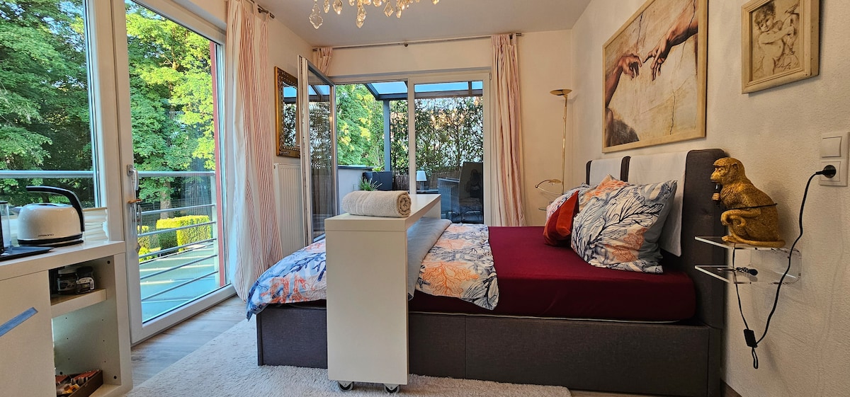 Übernachten Sie in der stilvollen und ruhig gelegenen Studiowohnung im Herzen von Gersthofen. Die Wohnung bietet eine attraktive Lage mit guter Anbindung an die Autobahn A8 nach München, Ulm und Stuttgart. Einkaufsmöglichkeiten sind schnell zu Fuß erreichbar. Das Erlebnisbad „Titania“ mit seiner großen Saunalandschaft ist nur wenige Minuten entfernt, ebenso wie das Zentrum von Augsburg. Auch das LEGOLAND erreichen Sie bequem in 25 Minuten.