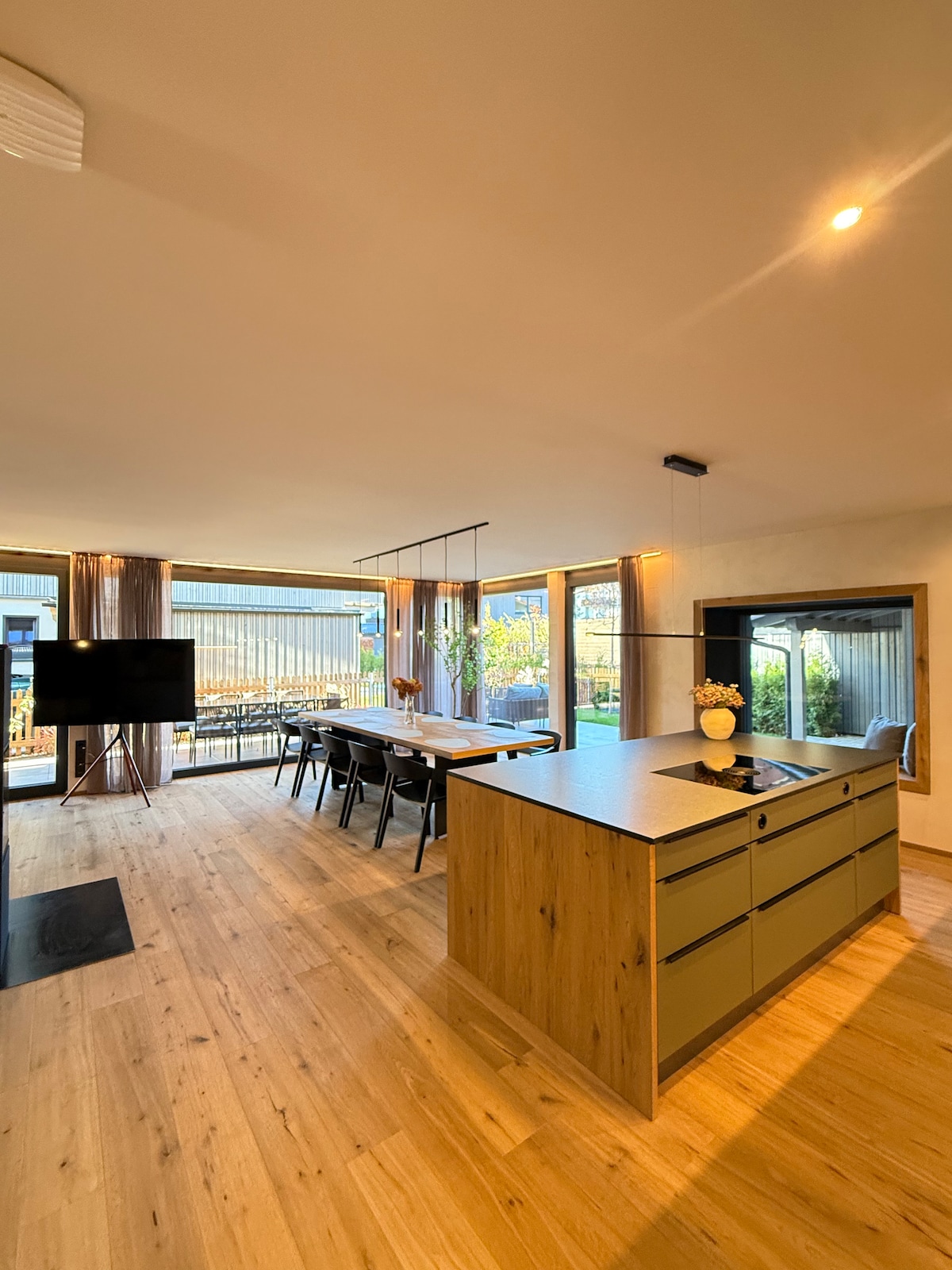 Welcome to the Alpen Lodges in Gindels. The perfect base for excursions in the Allgäu region. A stylishly furnished 150m² house awaits you in Gindels near Rettenberg. It offers everything you need: > 2 king-size beds, 3 sofa beds > TV with Waipu and Netflix > Wi-Fi > Modern kitchen > Balcony with mountain views > Highchair and travel cot > Large bathroom with bathtub > Allgäu Walser Card guest card > Spacious terrace > Bed linen and towels included
