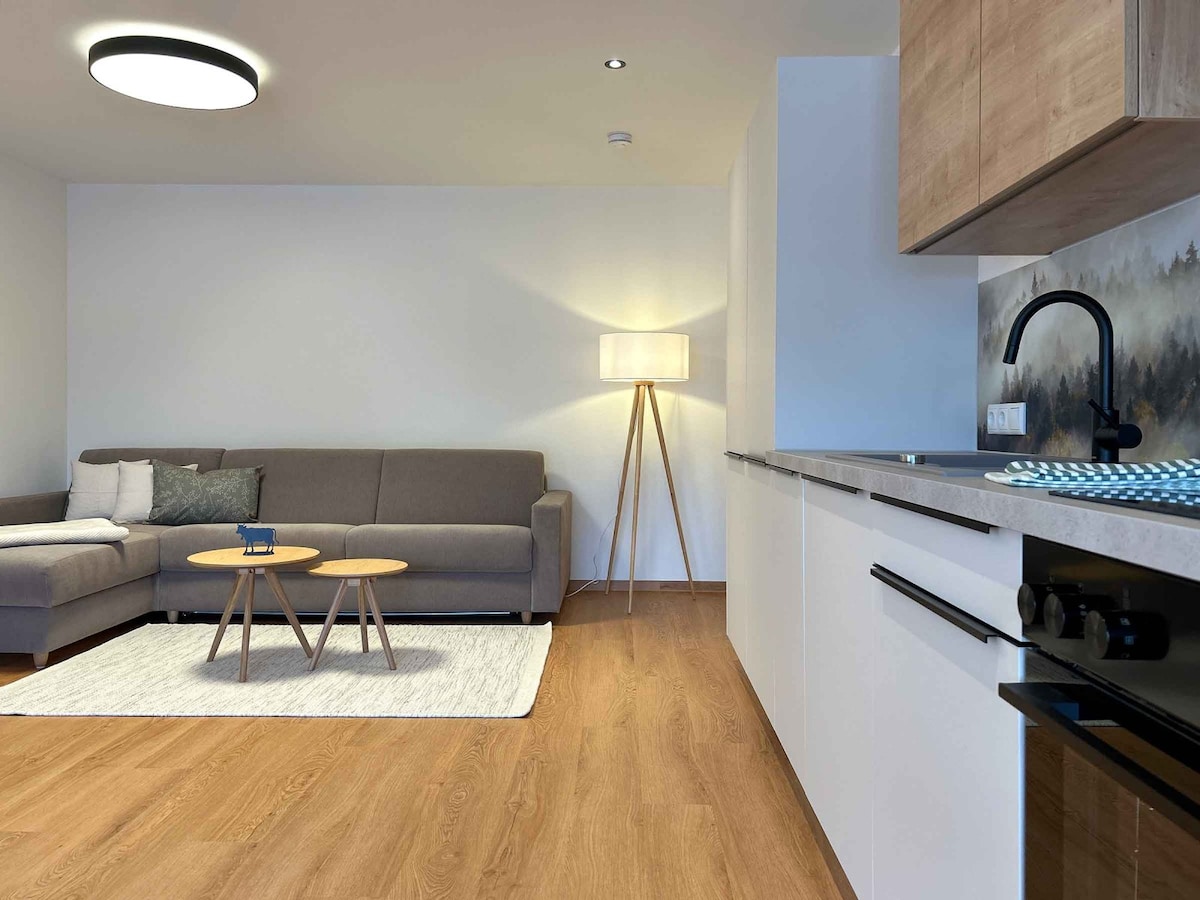 Our freshly renovated 50 sqm flat in Dinkelscherben offers modern comfort for families, couples, business travelers, and nature lovers. It features a bedroom, bathroom, hallway, and living area, plus coffee machine, kettle, microwave, projector, hairdryer, iron and Wi-Fi. Sleeps up to 5, baby cot on request, pets welcome. Blackout curtains, insect screens, and a 15-minute walk to the train station. Our home is cozy and welcoming – just as it was designed for families with children and pets.