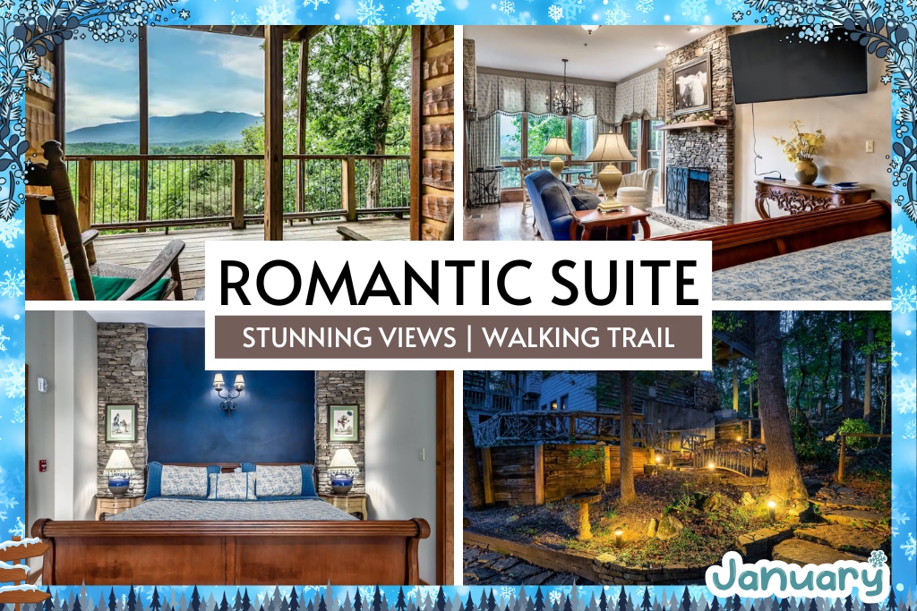 ★ “The mountain view when we walked in was unbelievable. We had coffee on the balcony every morning and just soaked it all in.” ★ Cliffside Bliss is perched perfectly for breathtaking Smoky Mountain views. From sunrise on the balcony to relaxing beneath the gold rainfall shower, this suite invites long mornings and romantic evenings—complete with complimentary breakfast to make each day unforgettable.