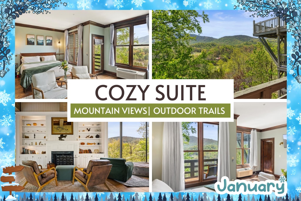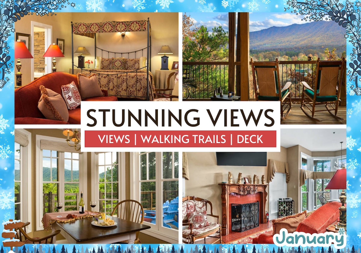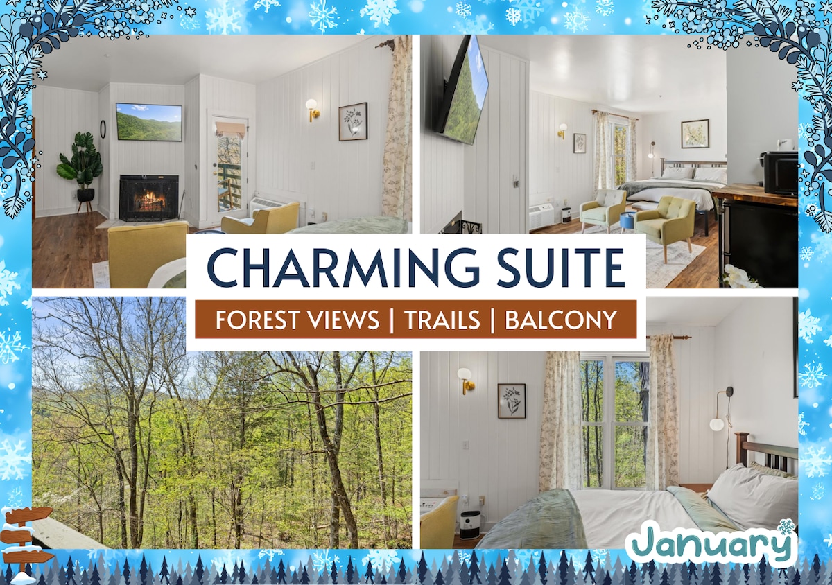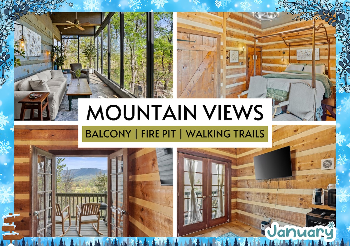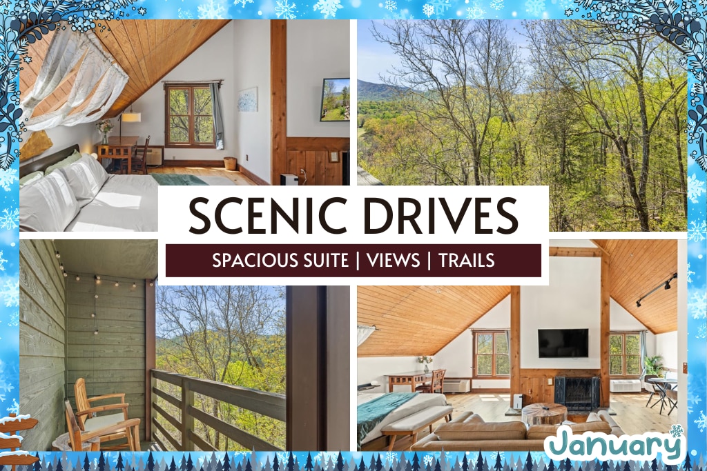 ★ "Beautiful room with even better views! I’d love to stay here again. Thanks for hosting us!" ★ Escape to the Bordeaux Suite for a romantic retreat! With breathtaking Rich Mountain views, this charming chalet invites relaxation. Savor crisp air from the porch rocking chairs or unwind in a spacious suite with a king bed and 55’’ Smart TV. Explore walking trails, koi ponds, and a quaint chapel—plus enjoy complimentary breakfast each morning.