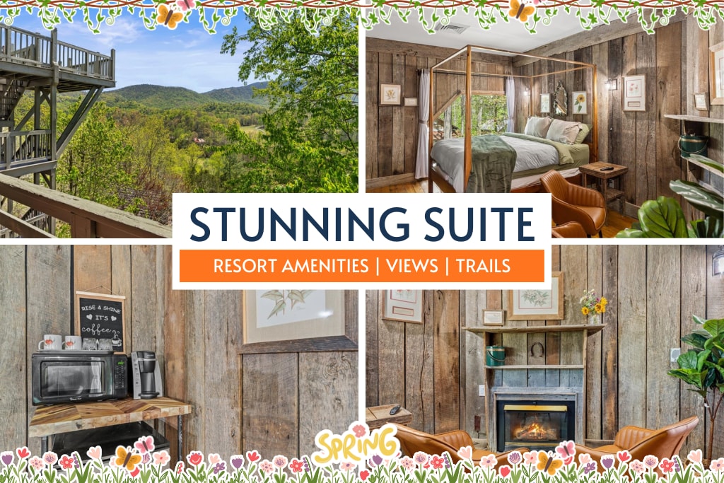 ★ “We walked in and literally gasped—the view of the Smokies from the room is breathtaking.” ★ Welcome to Iris Spring, a light-filled retreat that brings the mountains straight to you. Sip coffee on your private balcony or curl up in front of the TV—either way, you’ll enjoy some of the best Smoky Mountain views on the property. Each stay includes complimentary breakfast to start your mornings right.