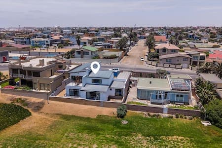 Ocean front, spacious, peaceful and upscale home with a stunning view of the Atlantic ocean. There is no better place to wake up in the morning and have a cup of coffee while overlooking the crashing of the waves. Close to the Platz Am Meer mall and other amenities, it is conveniently located in the town of Swakopmund. With direct access to the beach from the house you can also finish your day soaking up the breathtaking sunsets with a stroll along the water.