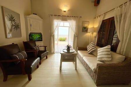 Beautiful detached studio apartment with ocean view. Right on the beach, it is one of only 17 beach front properties in central Swakopmund. 1 minute walk for brand new 4-star hotel with 4 great restaurants and a 5 minute walk to down town.