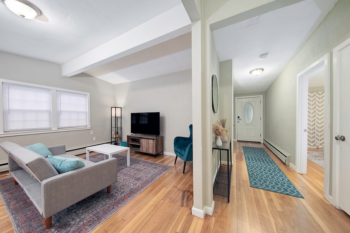 NOTE FOR WORLD CUP 2026 TRAVELERS: Please be advised this property is not near Foxborough, MA. Roughly 1 1/2-2hrs by car. Much longer by public transportation. Steps from the harbor and minutes to the beach, this modern two-bedroom home has been completely renovated. Free parking on site and surrounded by shopping, food, and more--walking distance to everything you need.