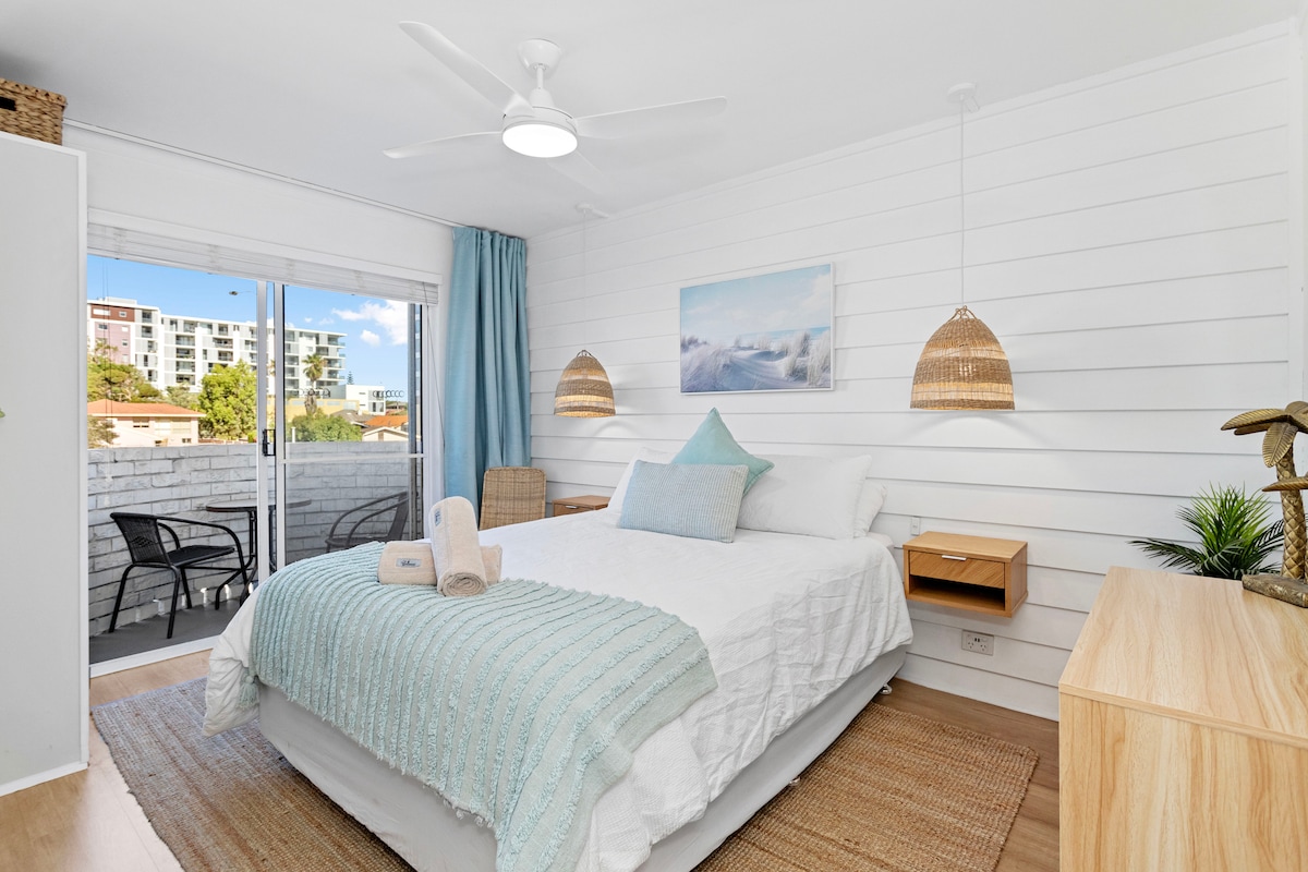 Comfortable queen bed with quality bedding Air conditioning cooling & heating Fully equipped kitchen with microwave, smeg kettle,full size fridge freezer, gas hotplate and oven Flat screen built in wall TV Comfortable 3 seater couch,ottoman and armchair Cute 2 seater dining nook, the perfect spot for that morning coffee while taking in the views of the ocean Renovated bathroom with hairdryer, bath towels, body wash Wifi Top floor NO KIDS
