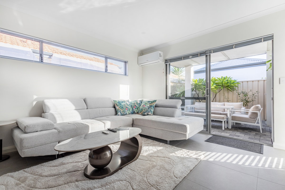 干净整洁、时尚的现代房源,配备 3 张标准双人床