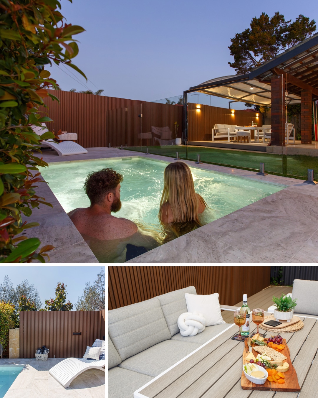 Enjoy this beautiful spacious villa , with a view overlooking private pool , tropical gardens enjoyed day and night. Great space any time of the year. Guests love the alfresco and pool area in the warmer months. Has a gas log fire where you can curl up in front of with a good book or a glass of wine in the winter months. Located opposite park with childrens play ground. Short walk to beach, cafes,shops, bars, parks and public transport.