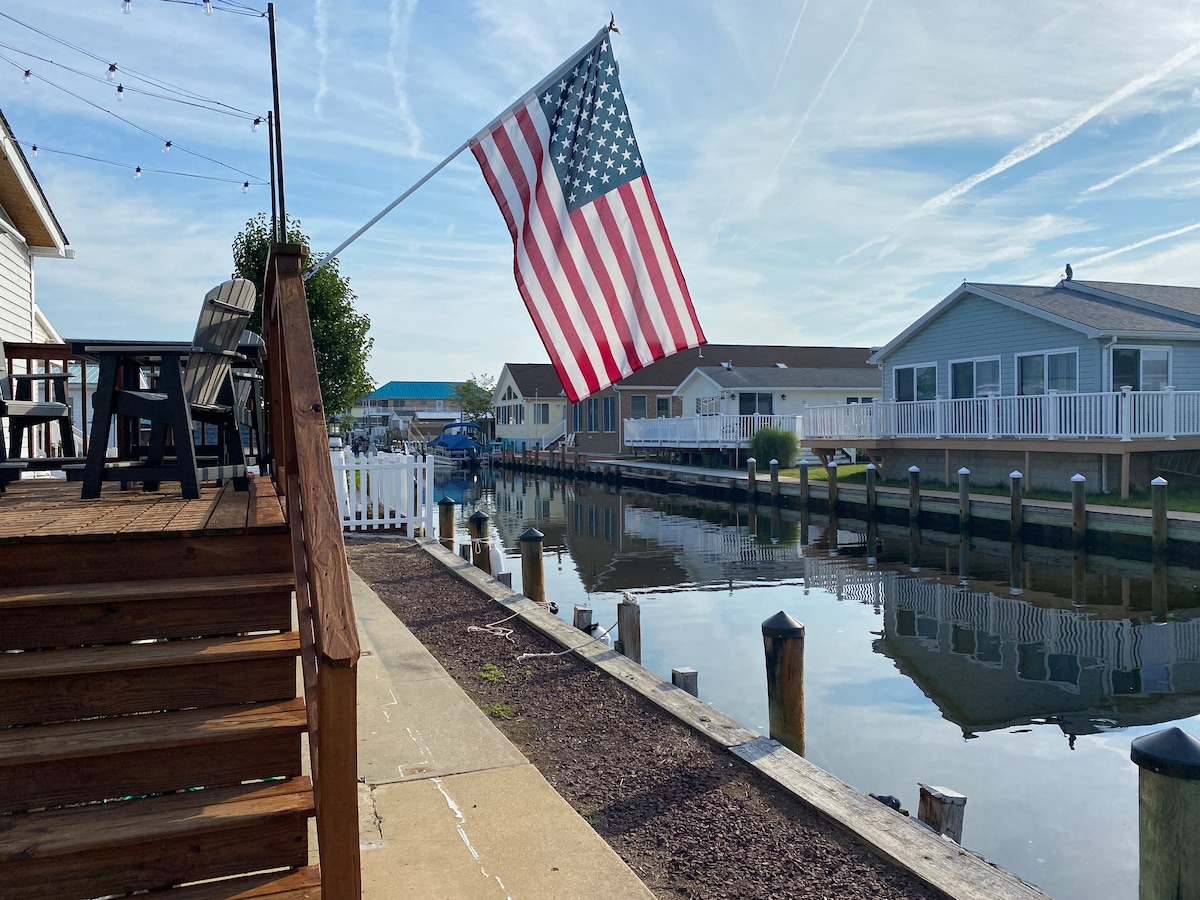 After relaxing at the beach (just a 7 min walk away), unwind on our deck "watchin' the tide rollin' away!" Get the best of the bay & the beach with this dog-friendly hidden gem! Imagine evenings enjoying the bay breeze as you crack crabs on the deck! Relax inside our open-concept great room that allows everyone to be together. Fish on our private dock or use it for your own boat or jet-ski to dock there. Witness spectacular sunsets with our Kayaks. Enjoy a well lit, private work space to virtual work w/ high speed internet! A new wood CRIB now in master suite for restful sleep! The pools and tennis/pickleball courts are only a few blocks away for your enjoyment! Plus, a truly unique OUTDOOR MOVIE EXPERIENCE for all our guests to make for the best Vacay EVER!