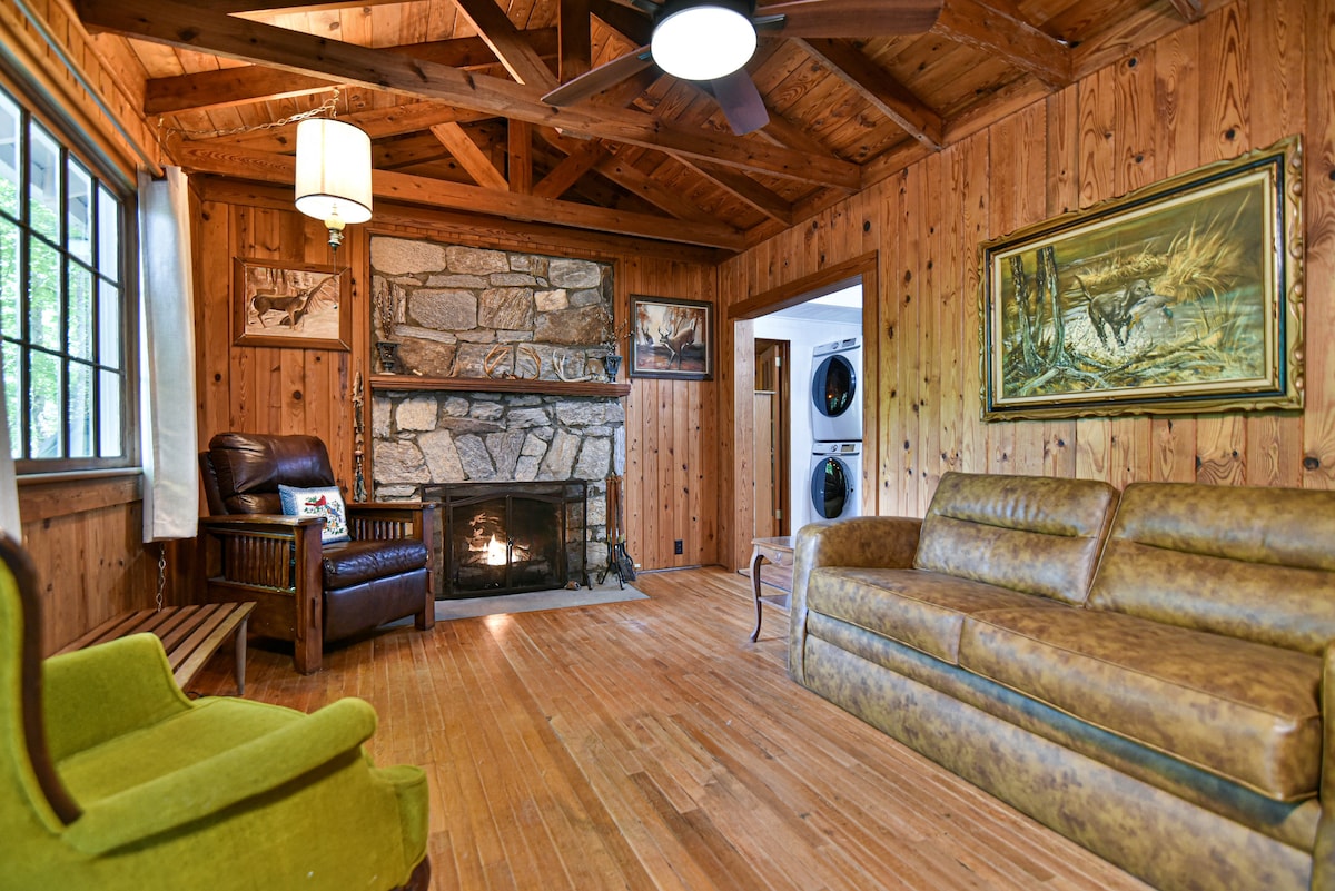 Please read full description before booking. This artful, cozy, updated cabin is 1 mile from WWC and river trails, near Blue Ridge Prkwy, 15 mins from Black Mtn and Downtown Asheville. Near East AVL restaurants and breweries. Cabin is across from Hidden River Events venue. Enjoy the rustic-yet-refined atmosphere, porches, original art, fire pit, and welcoming hosts. CABIN SLEEPS MAX OF 6. Groups of 8 require booking tiny cottage on the property separately. See details below.