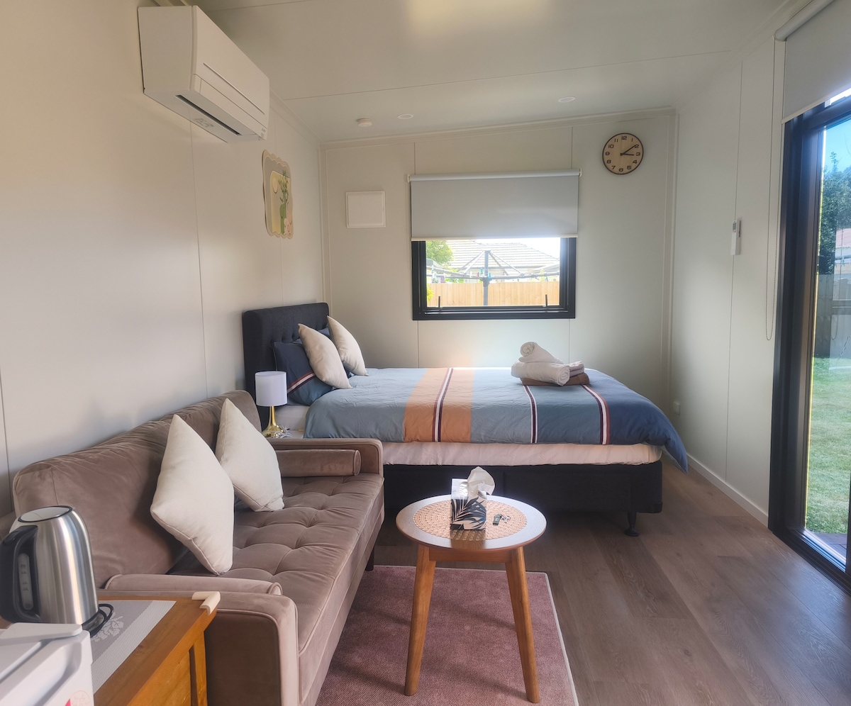 Modern studio conversion. Private en-suite bathroom and kitchenette. Private Patio area. Perfect space to relax. Free off street parking. Separate from main house with own entrance. This is your own space and a great base from which to explore Christchurch. * 5 mins - Airport * 15 mins - Central City * Basic Breakfast included * Nespresso Coffee * Air Conditioning/ Heat Pump * TV with Netflix * Fast Wifi * 24 hour Lockbox * Multi-night discounts * Pet Friendly * Ecostore bathroom products