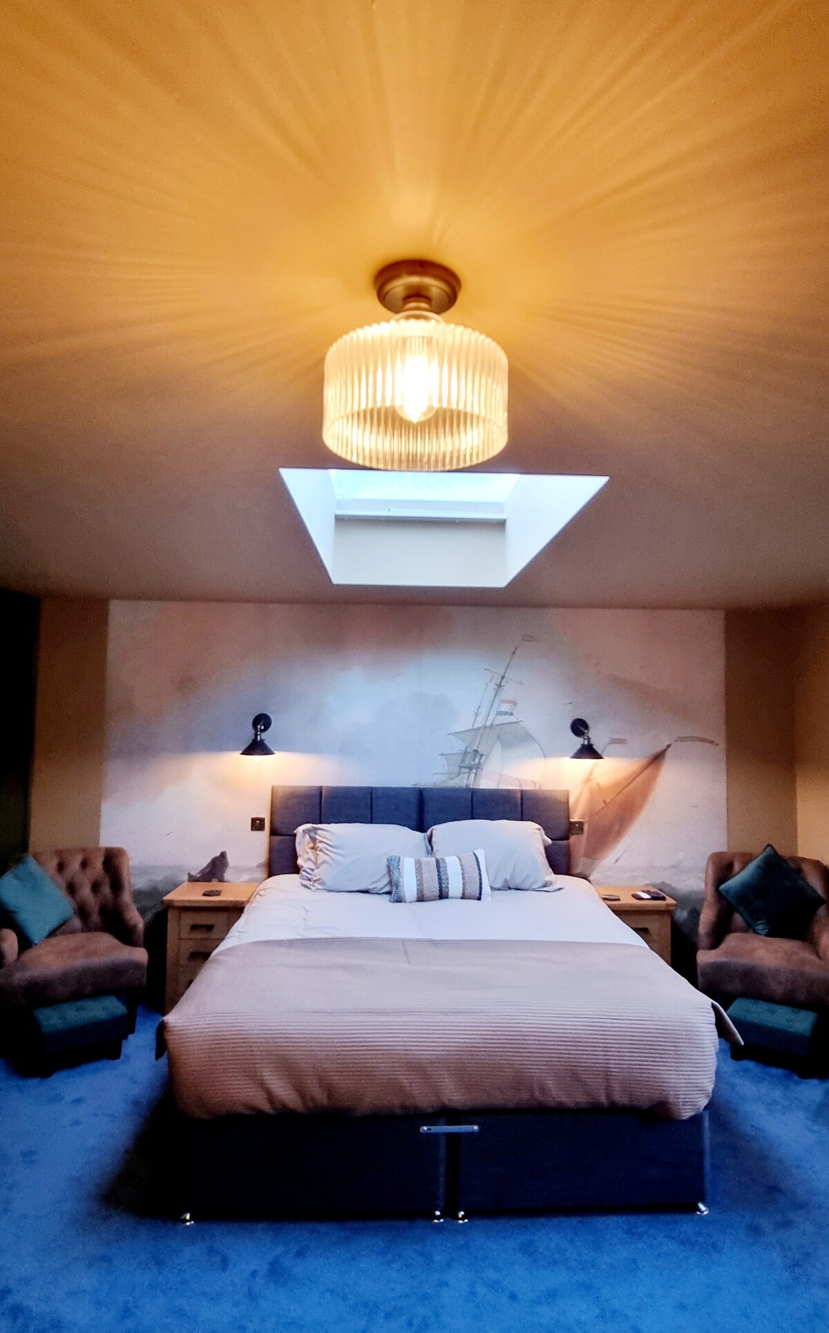 A modern, light, self-contained studio with open plan stairs to a low loft bed in a mezzanine sleeping area with sloping ceiling (partial height restriction). Private entrance to an open plan kitchen and lounge, with a shower room. This scandi-inspired space is suited to cosmopolitan travellers. Conveniently located 5 mins walk to Falmouth town centre, cafes, bars and restaurants and also to Gyllyngvase beach, the Dell train station and Falmouth University. Off road parking on shared driveway