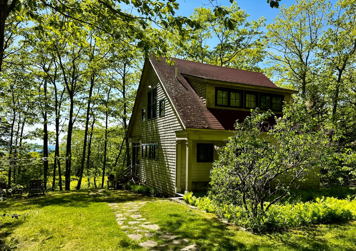 Pet-friendly Maine cabin on 12 private acres of woods and blueberry fields, one hour from Acadia National Park. A favorite of couples visiting Maine for the first time. • 15 minutes to shopping, hiking, swimming • Open kitchen and sitting room with new appliances and gas fireplace • Screened porch with rocking chairs and chaise • Loft bedroom with full bed and new linens • WiFi, Roku TV, gas grill, stocked bar • EV charger • Seasonal wild blueberries • Dark skies, slow mornings, quiet nights