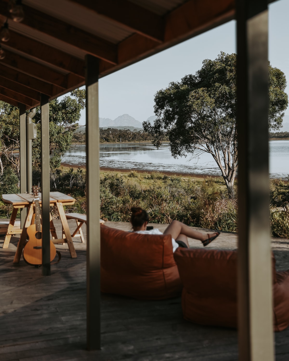 Shelter is located centrally on the town outskirts of Swansea. Walking distance to shops, bottle shop & the beach. With a beautiful outlook over the next door farm & hills beyond - especially at sunset. Shelter is built from a recycled shipping container & decorated with all our favourite treasures collected on our travels, locally & many pre-loved.