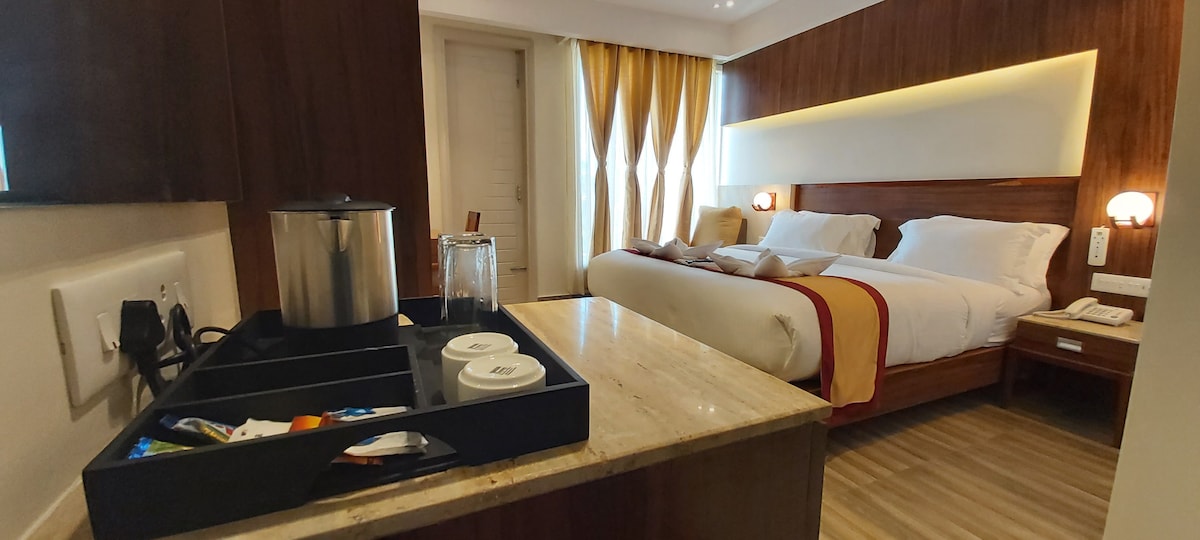 This stylish and unique place sets the stage for a memorable trip. The property has its own in-house multi cuisine restaurant and bar, with a menu that includes special diet meals for the health-conscious guests. The Andaman Kitchen is a popular Chinese restaurant at a distance of 5 minutes. Hotel Kattabomman serves Indian cuisine and is just 550 m from the hotel. Courtyard- Rooftop Restaurant at J Hotel, a multi-cuisine restaurant located 600 m, at a walking distance of 6 minutes.