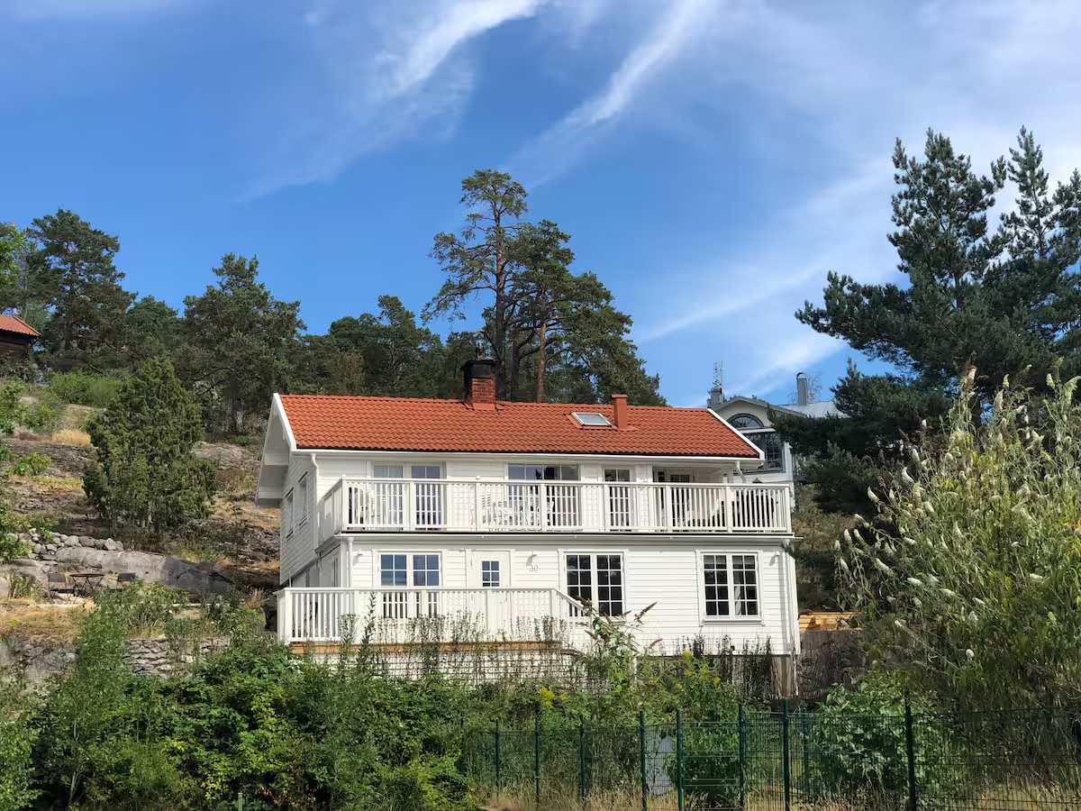 Idyllic house, large garden, right by a peaceful lake. 18 min car drive from central Stockholm. Boat + fishing equipment + lounge on lake pontoon included. speak: eng, ger& fr Master bedroom, modern kitchen, two bathrooms, dining room, living room. Washing machine, dryer, dishwasher, heated flooring, terrace, barbecue. snabbt wifi, Verisure larm. gärna lugna tillställningar. Minsta längd. 2 nätter. Vi hyr inte ut för en dag, då extra avgift på 15 000:-.