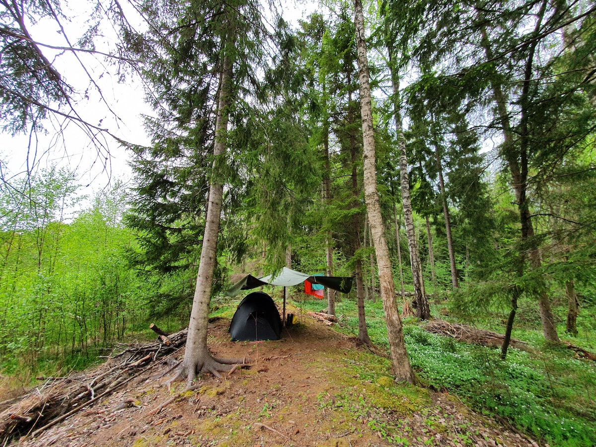 Agundaborg bell tent is a canvas tent at Agunnaryd lake situated in southern Sweden, Småland. The bell tent is situated at the end of a half island looking out over the water and is a perfect choice for someone seeking an off-grid glamping experience. The roof/ side walls are waterproof canvas. There are battery driven lamps in the tents. Our tents are furnished with wooden framed beds and some stools as bedside tables. They are not heated so plan accordingly for the season.