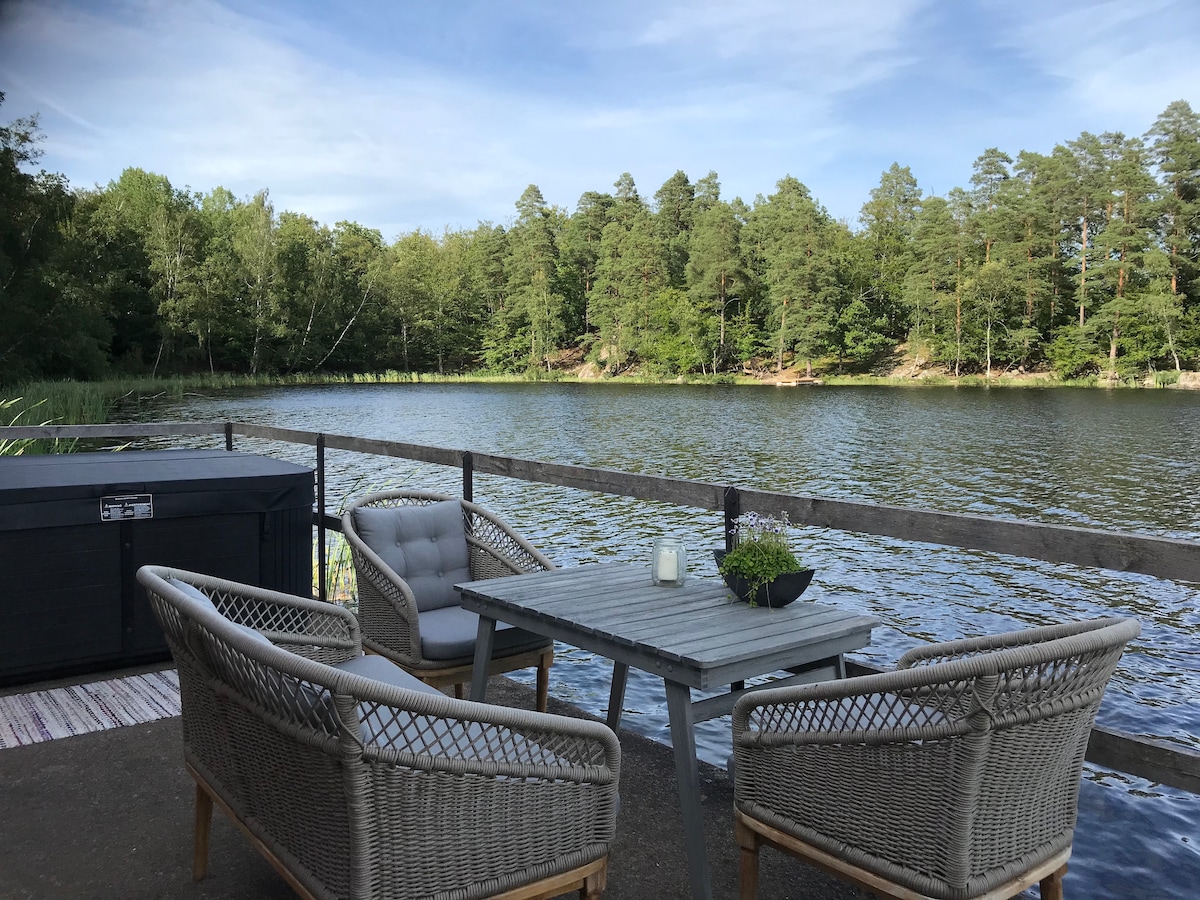 Sjöstugan- vår pärla precis vid sjökanten! Eget hus med sovloft, kök, vackert stort rum med braskamin och utsikt över sjön. Vedeldad bastu med dopp i sjön precis intill. Spabad på bryggan- alltid varmt. Badbrygga 5 meter utanför dörren. Tillgång till båt. Om ni vill köpa fiskekort, kontakta värd. Ved till baskamin och bastu ingår. Gården är inhägnad hela vägen till sjön och vår Beagel hund Vide är ofta lös ute. Han är snäll. Lakan, handdukar och städning ingår.