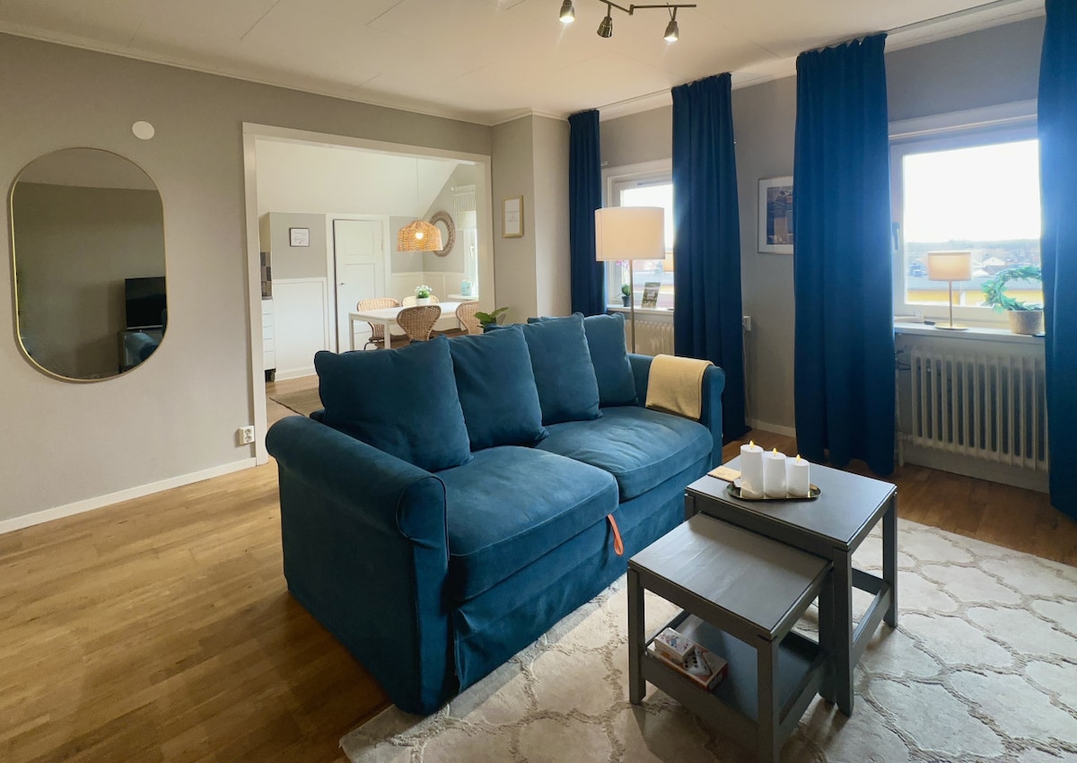 Experience Katrineholm from this bright and spacious 75 m² apartment, perfectly located in the very center. Two large bedrooms and wide single beds hosting up to 8 guests in total. - Two bedrooms with comfortable beds - Living room with a 75” Smart TV with streaming services - Fully equipped kitchen - Fast, stable Wi-Fi - Just a 2-minute walk to the train station, restaurants, and shopping - Private parking and breakfast available as add-ons Pets are warmly welcome too!