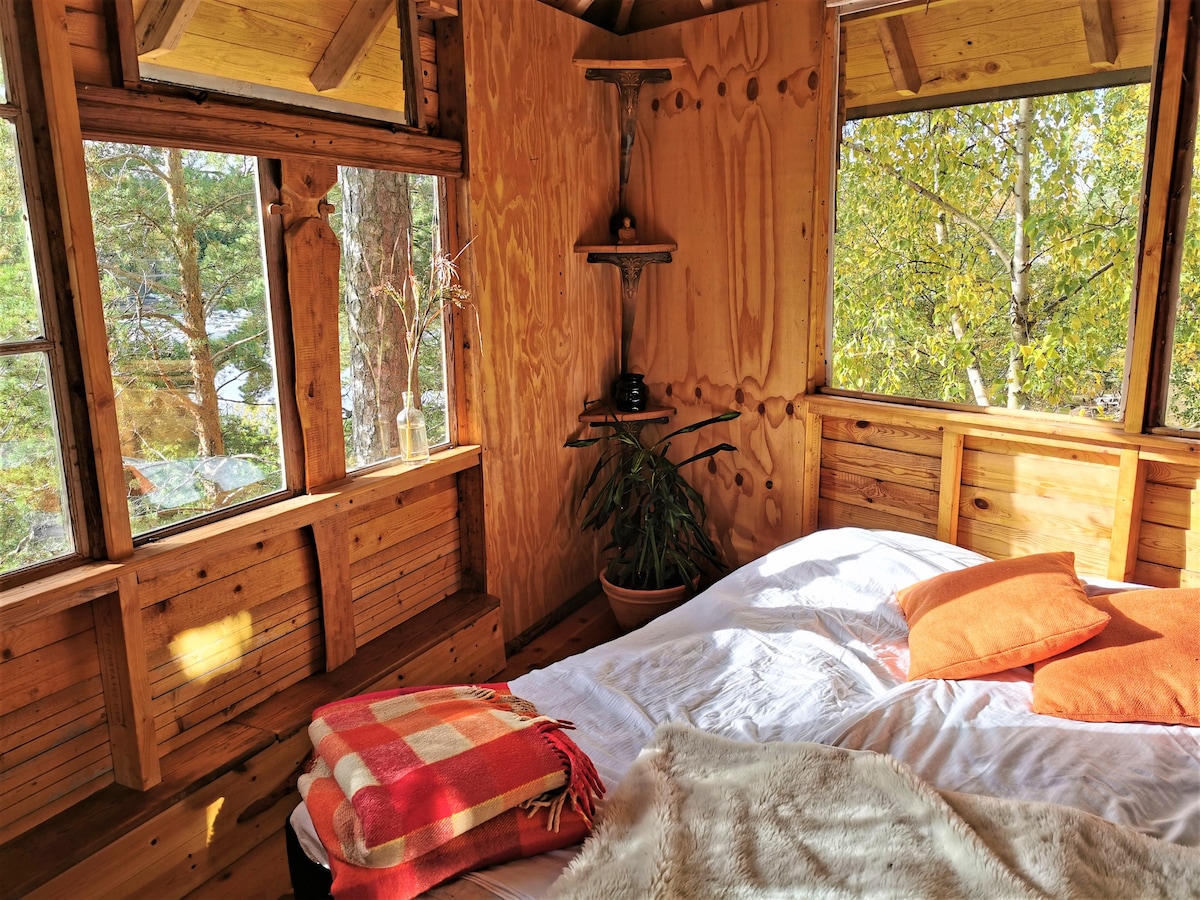 Välkommen till vår tallkotte Denna trädkoja är belägen i den vackra småländska skogen och erbjuder en vistelse utöver det vanliga. Det är intimt, enkelt och rofyllt. Här sover du som gäst högt upp bland trädkronorna och vaknar till fågelsång. Genom de stora fönsterna kan du njuta av skogsvyer så lång ögat kan nå. Här ges möjlighet till maximal avkoppling men för den som vill ha mer aktivitet är boendet en bra utgångspunkt för dagsutflykter.
