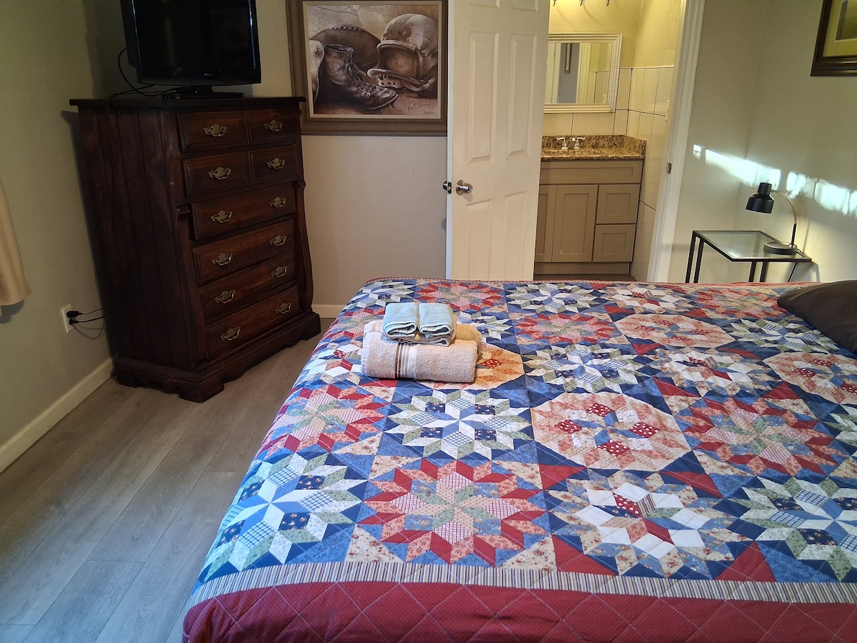Welcome to our cozy one bedroom apartment nestled in the heart of Dallas. This charming space offers a comfortable king-sized bed, spacious living area, and a fully equipped kitchen. Step outside onto your own private patio, perfect for enjoying your morning coffee or sipping a glass of wine in the evening. Located in a vibrant neighborhood, you'll have access to the city's best restaurants, shops, and attractions. For business or leisure, this apartment is perfect for your stay in Dallas.