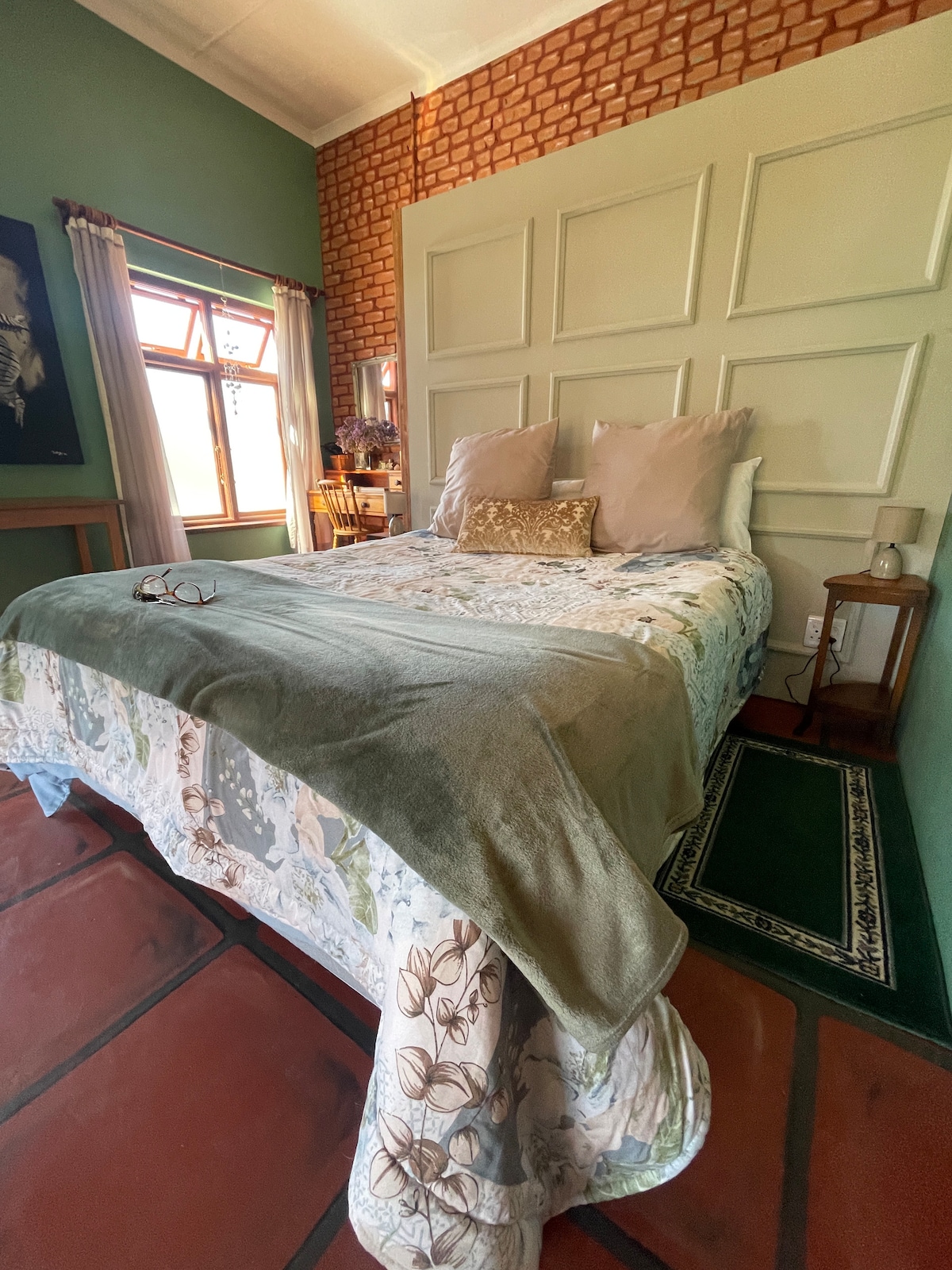 The Blue Strings Room is a mirror image of the adjacent Yellow Strings Room and transports you to a peaceful haven of fantasy, reading, and tranquility. The unit offers a bedroom with a sitting nook and closed off veranda to enjoy a drink while relishing the breath-taking mountain views. The rooms also face the Alpaca camp, housing four curious Alpacas. Bordering the (only semi-self-catering) rooms is the outside barbeque facility and swimming pool. The perfect place to recharge!