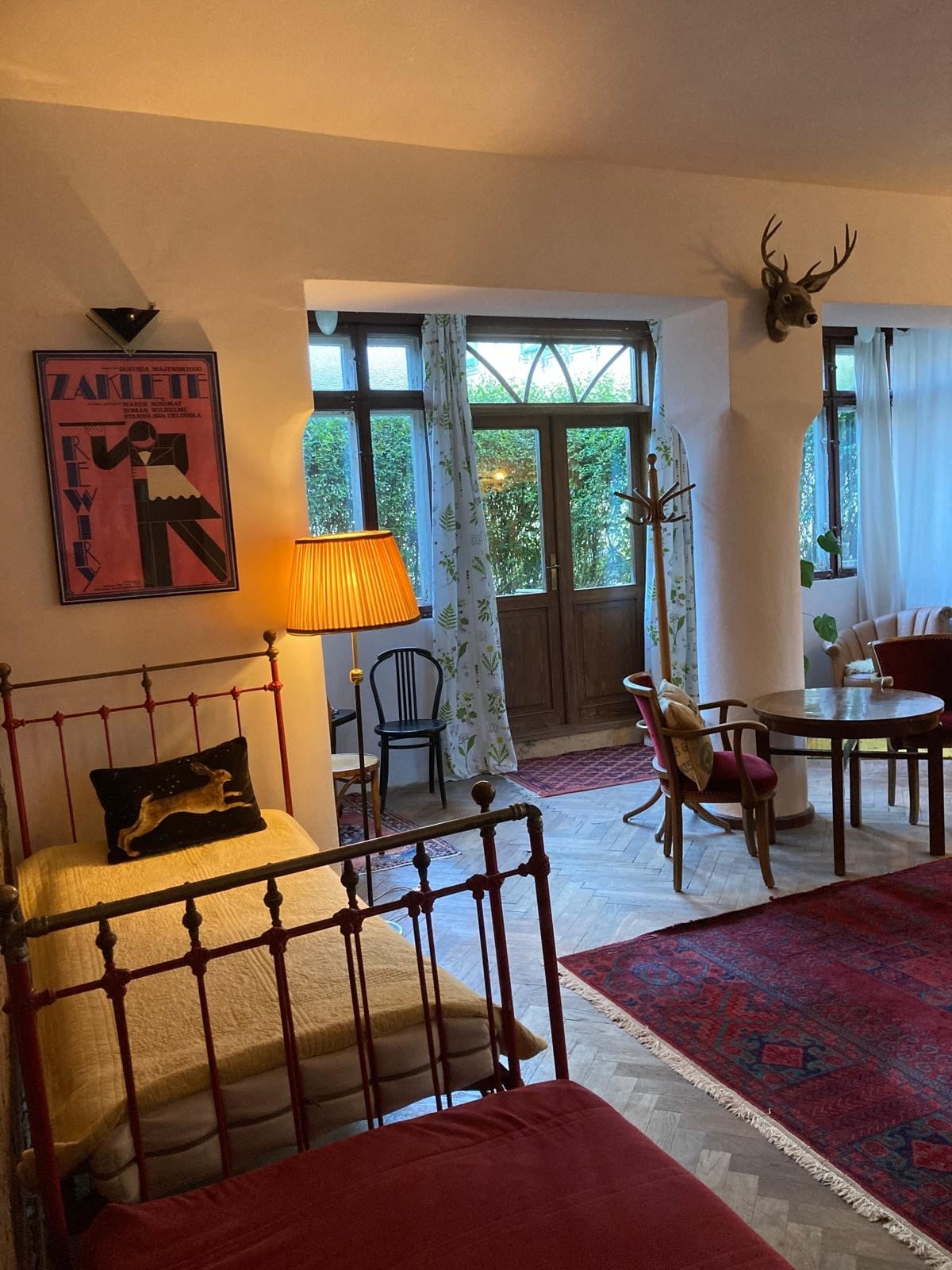 Admire how modern features blend harmoniously into a period apartment. A sunny front room overlooks a leafy neighborhood while houseplants and botanical prints continue the natural motif indoors. A cabinet displays a collection of elegant dinnerware. The apartment is near the city center of Wroclav. It's a 10 minutes by tram or 25 minutes walk to the centre (Arkady)Although a tram stop is close by, this is an incredibly quiet and peaceful place. Some quirky local cafes are just around the corner