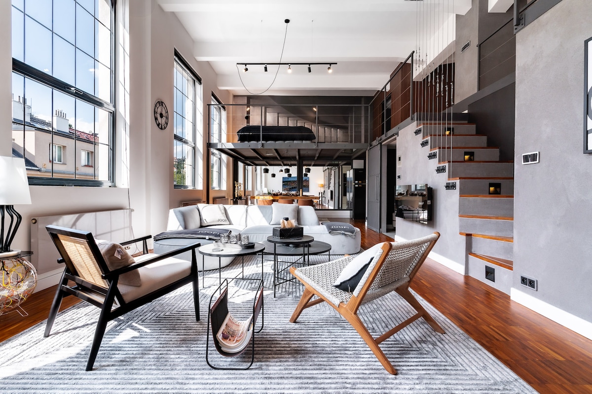 ❗Use for registered guests only. No commercial use, photography, or filming. Violation = fine❗ ⚜️ Welcome to a spacious, stylish loft with unique details. This unique space awaits your visit. ⚜️ Free garage parking & fully equipped apartment. ⚜️ 1st floor: kitchen with dining area, bathroom, living room with fireplace. 2nd floor: 2 double beds & wardrobe. ⚜️ Growing calmer area, 10 min from city center by car, taxi, or public transport.