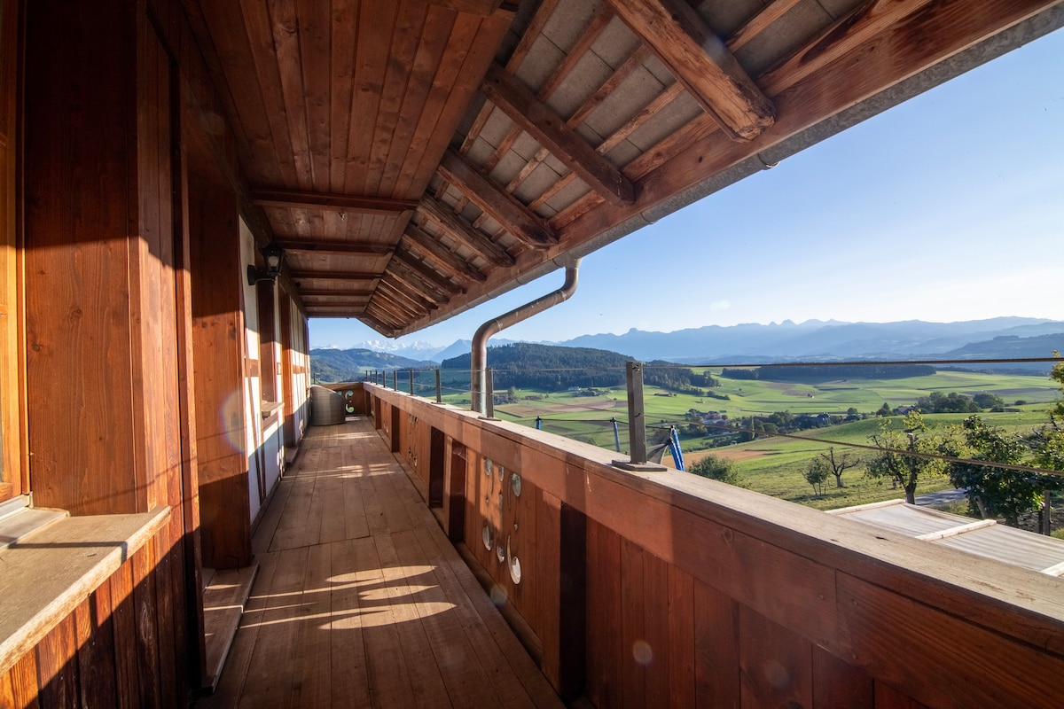 Gemütliches, heimeliges eingerichtetes Appartement mit Panoramasicht auf die Alpen im 1. Stock eines Bauern Stöckli, direkt nebem einem Bauerhof mit Kühen. In der Nähe befindet sich das Berner Oberland und diverse Ausflugsziele. 2 Eigene Balkone ( Morgen und Abend Sonne) und eigenem Sitzplatz ausgestatet mit sitzgelegenheiten. Die anreise empfehlen wir nur mit auto!