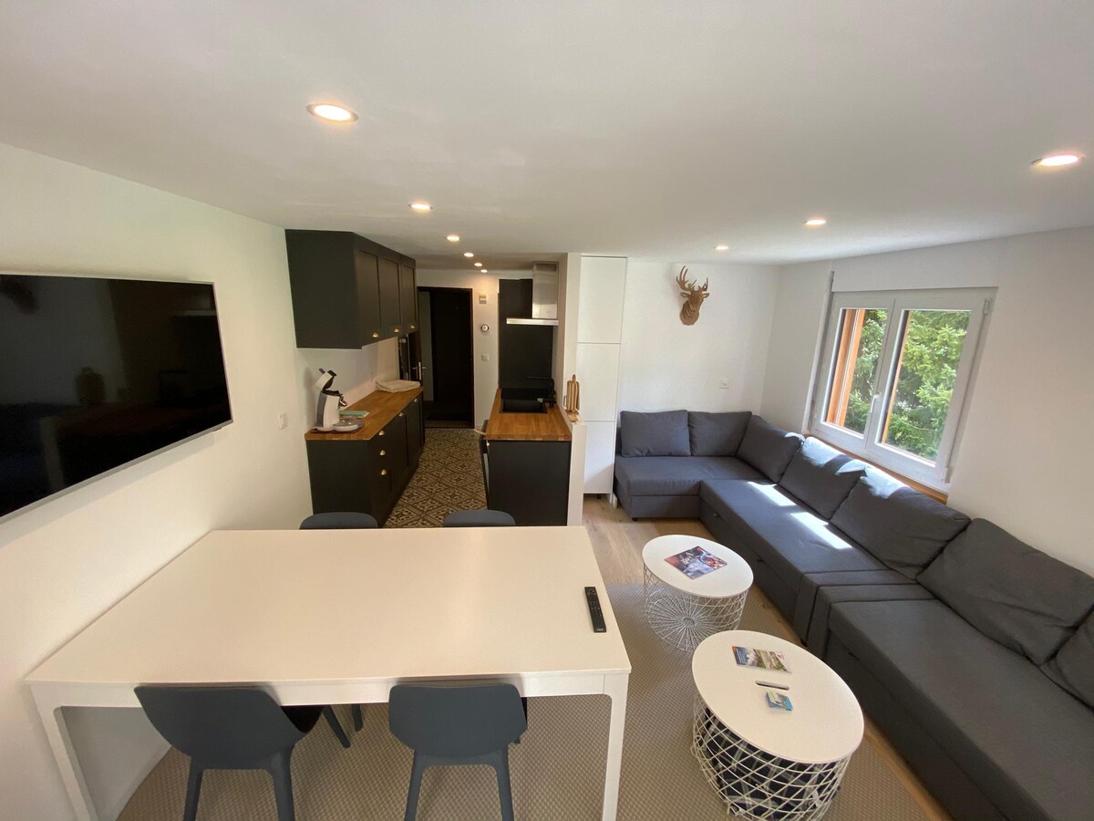 This charming 3.5-room apartment is located in the center of the village and is a true gem of Kandersteg - directly on the mountain river. The apartment offers two cozy bedrooms, a spacious living room and a bright, unique gallery. The semi-open kitchen is spacious and well-equipped, ideal for those who appreciate contact with the living area. The apartment's two balconies are particularly noteworthy. Both balconies offer an impressive panoramic view of the mountains.