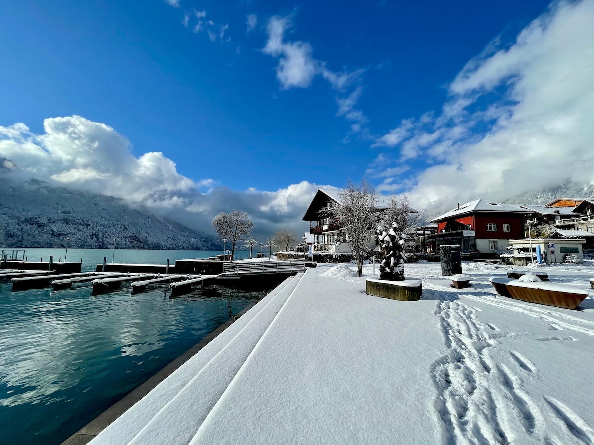 ROMANTIC STUDIO**** at Lake Brienz with garden & breathtaking view of the mountains & lake! ONLY 3 minutes walk from the train station, hiking and shopping opportunities, tourist info, restaurants, boat rentals, bus and boat station! Distance by car in minutes: Interlaken 20, Lucerne 45, Grindelwald 35 & Bern 45, Zurich 90. Highlights:JET BOAT, paragliding, SUP, ADVENTURE sports, Jungfraujoch, Titlis, Schildhorn, Brienz-Rothorn, Gießbach WaterFalls, Grimsel-Furkapass & others JUST COME AND RELAX