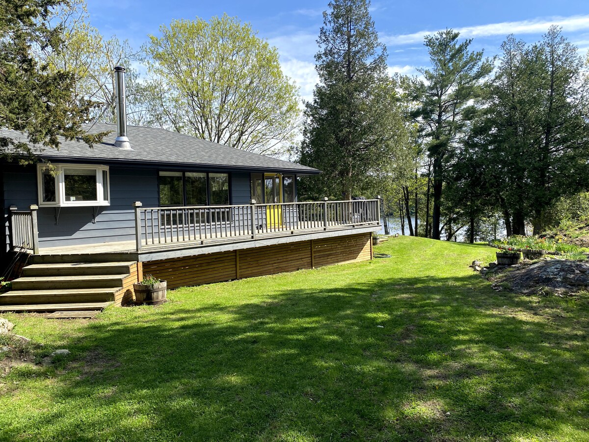Reconnect with nature at this unforgettable cottage escape. Perfect for families, couples, or anyone wanting to relax! Furnished with clean modern furniture. Beautiful, refreshing Sydenham Lake is steps from the cottage and the water is very deep off the dock so jump right in!! or fish, paddleboard, snorkel, paddle boat, canoe, whatever calls to you! Cottage is a 20 min walk to the town of Sydenham (which has a sandy public beach, boat launch, LCBO, Foodland, etc.) and 20 min drive to Kingston.