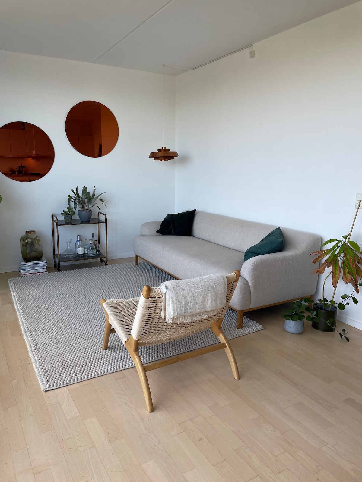 nyrenoverede og stilfuld. I Københavns gamle Sydhavn. Lejligheden er holdt i elegante beige og gyldne nuancer og smukt indrettet med kunst, der giver en luksuriøs stemning. Der er også en Quooker med kogende vand. Beliggenheden er ideel – tæt på en af byens fedeste parke ved vandet og tæt på Mozart Plads og København Syd station. Vi tilbyder parkeringstilladelse, der gælder tre dage ad gangen. Perfekt til en afslappende og praktisk base i København!"
