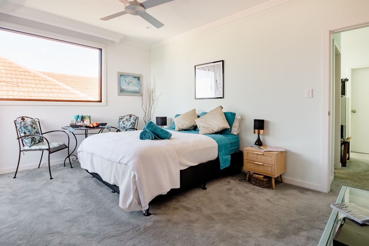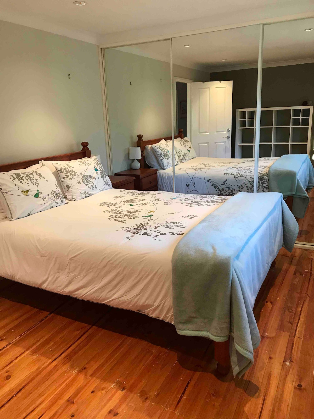 The accommodation consists of one large bedroom and a private bathroom, upstairs in my home. My husband and I live downstairs. It is NOT a separate, self contained apartment. The bedroom has a queen size bed, sofa, smart TV, bar fridge, coffee and tea making facilities, microwave, wifi, air con, work space. Accommodates 2 people max We also have another bedroom that sleeps 2 extra people for an additional cost. We only take one booking at a time so your upstairs area is totally private